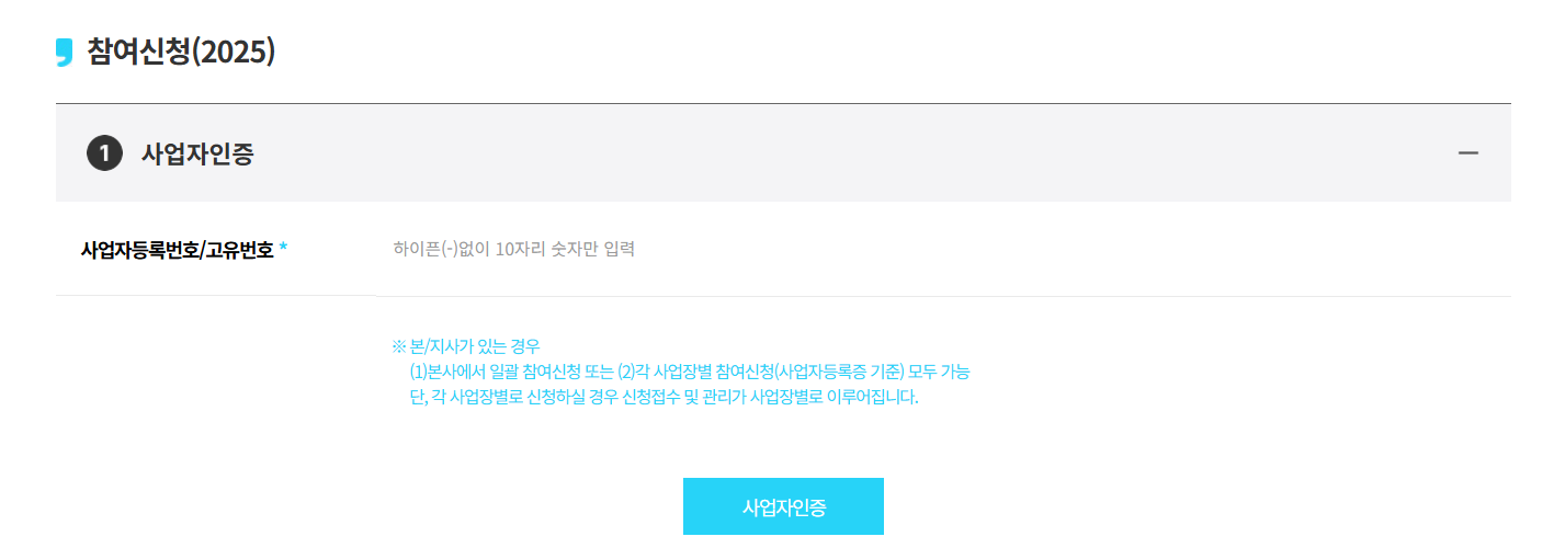 3) 사업자인증을 완료하고 신청서를 제출하면 끝!
